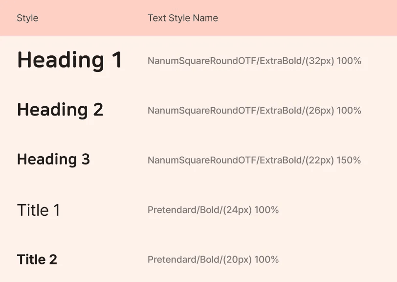 하지만 그 전에 앞서, 아래와 같이 Figma에 디자이너분들께서 작성해주신 기본적인 색상과 텍스트 스타일에 대한 정의가 이루어지면 좋을 것 같다고 판단하였다.